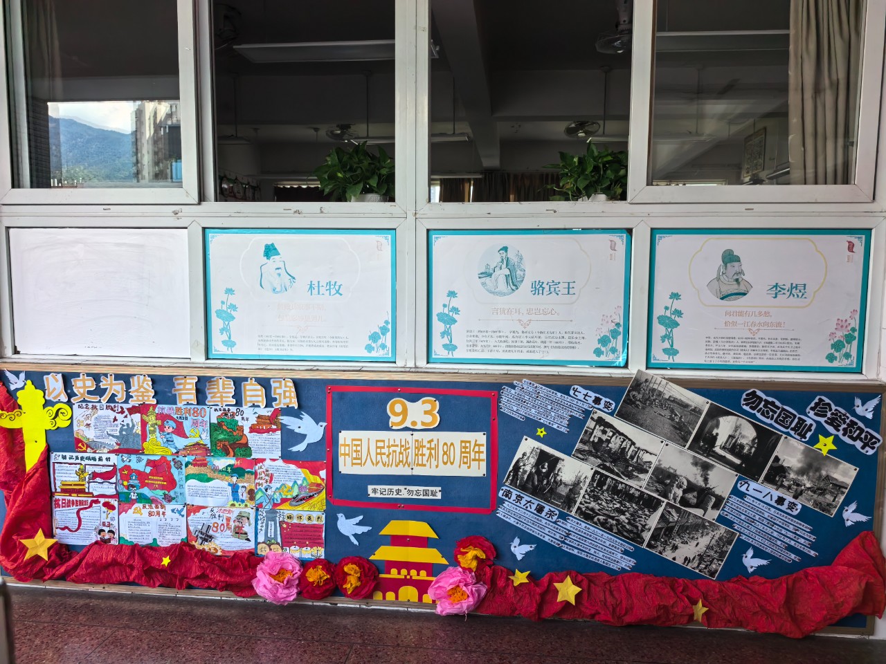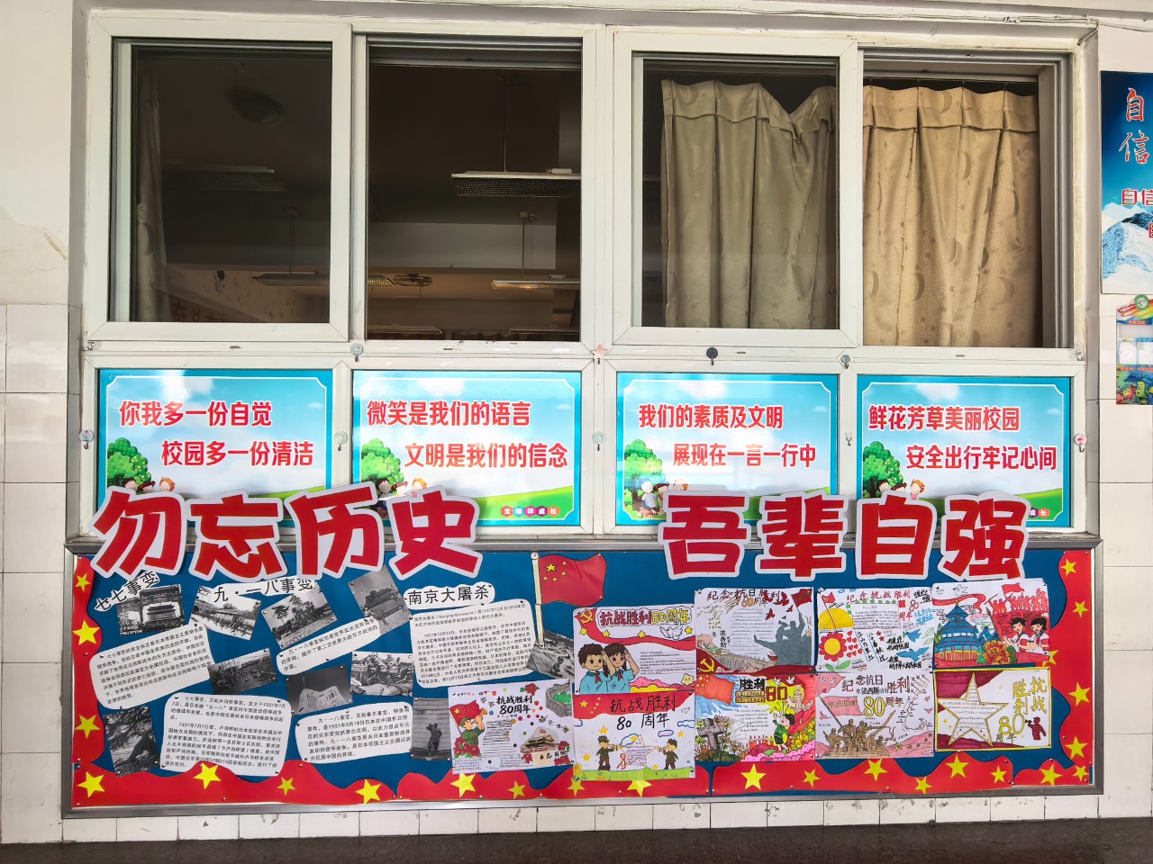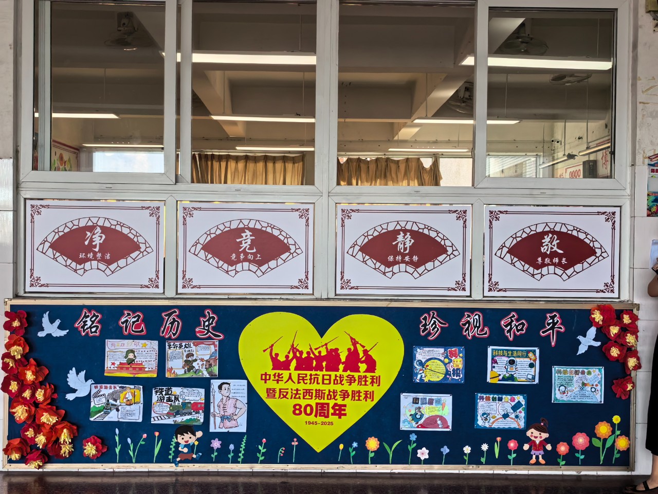 各年级走廊和公共区域焕然一新。同学们通过手工、绘画等多种形式,表达对祖国的热爱与未来的向往,营造出积极向上、充满自豪感的整体氛围,让校园的每一个角落都传递出浓浓的爱国情怀与责任担当。