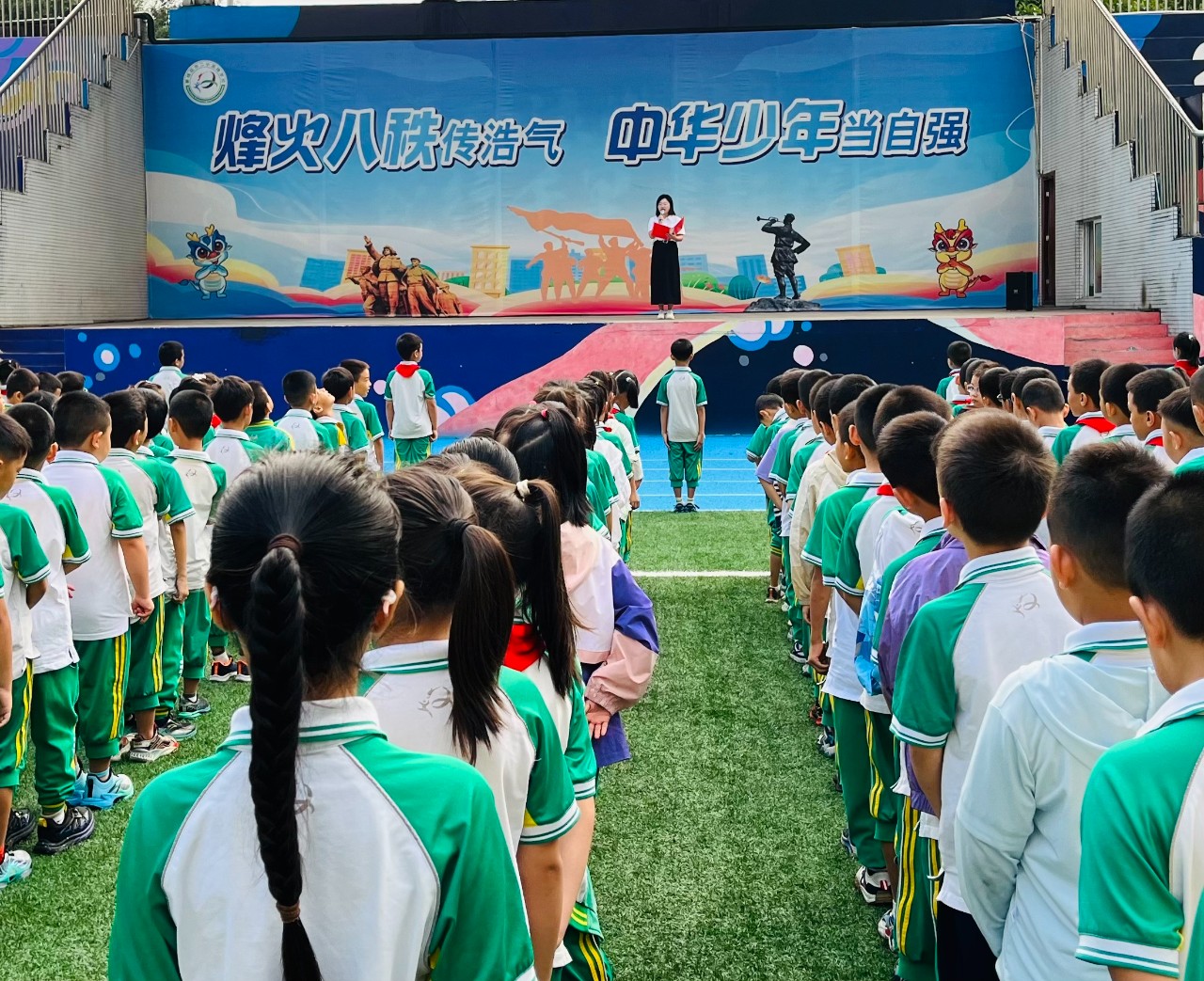 在纪念抗日战争胜利80周年暨2025年国庆节来临之际,攀枝花市第二小学校党委书记王晓波,副书记、校长陈艳,专职副书记党小琴以“承先烈遗志,做强国少年”为主题,结合历史故事与现实生活,分别为二学区的学生们上了一堂深刻而动人的爱国主义教育课。