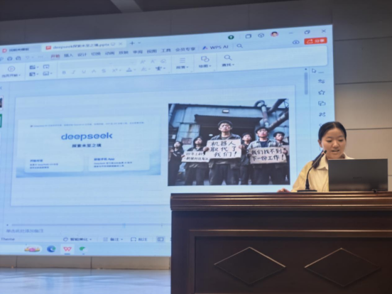 接着,雷璐老师围绕“DeepSeek:探索未至之境——在人工智能时代重新定义教育的温度”,向大家分享了AI技术在教育中是一位强大的“辅助者”,它可以成为个性化的学习助手,成为高效的教学工具,更是教育普惠的推动者,但是AI永远无法成为讲台上的“替代者”。因为它做不到情感的联结,做不到价值观的塑造,它也做不到生成性的成长。教育中最美妙的时刻,往往是课堂上的一个意外提问,是学生思维火花迸发的瞬间,这种充满不确定性的、动态的成长,是AI无法预设和替代的。最后还劝诫各位老师们不要焦虑,AI只是“超级助理”,而我们永远是“灵魂工程师”。
